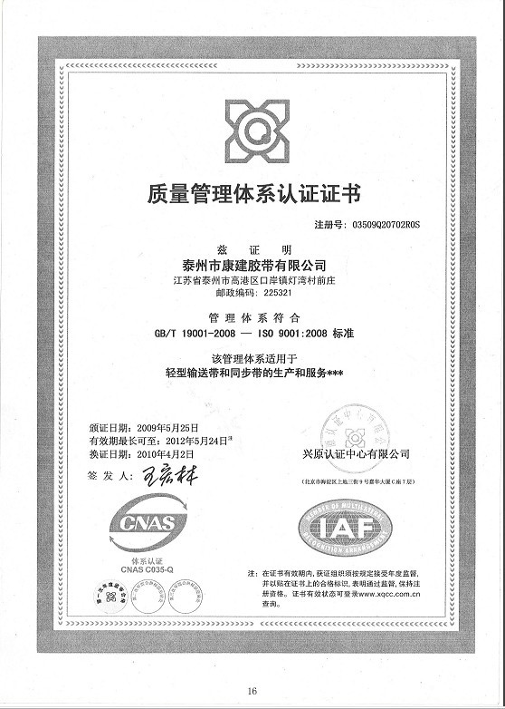 “康建”產(chǎn)品已通過ISO9001國(guó)際質(zhì)量體系認(rèn)證